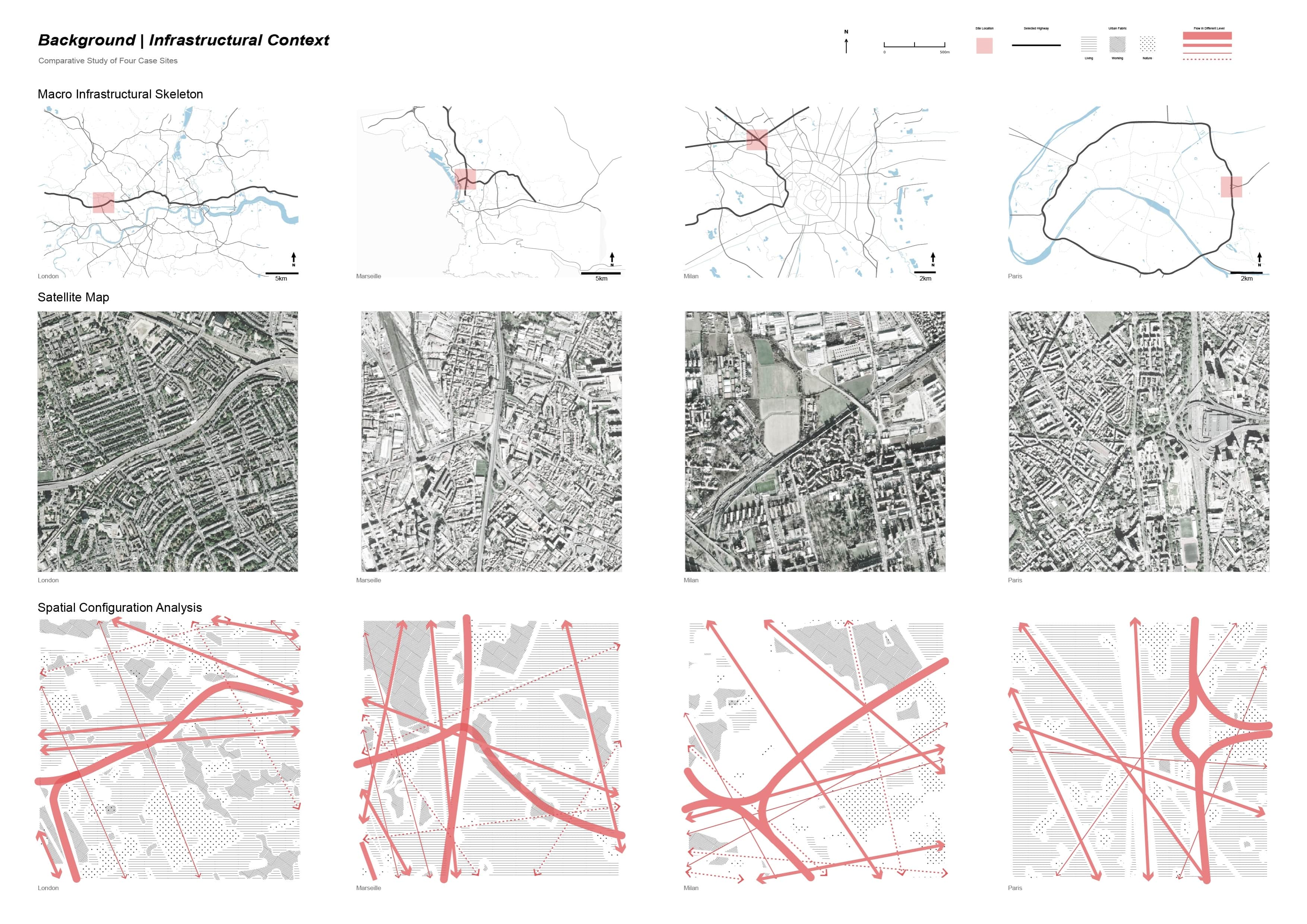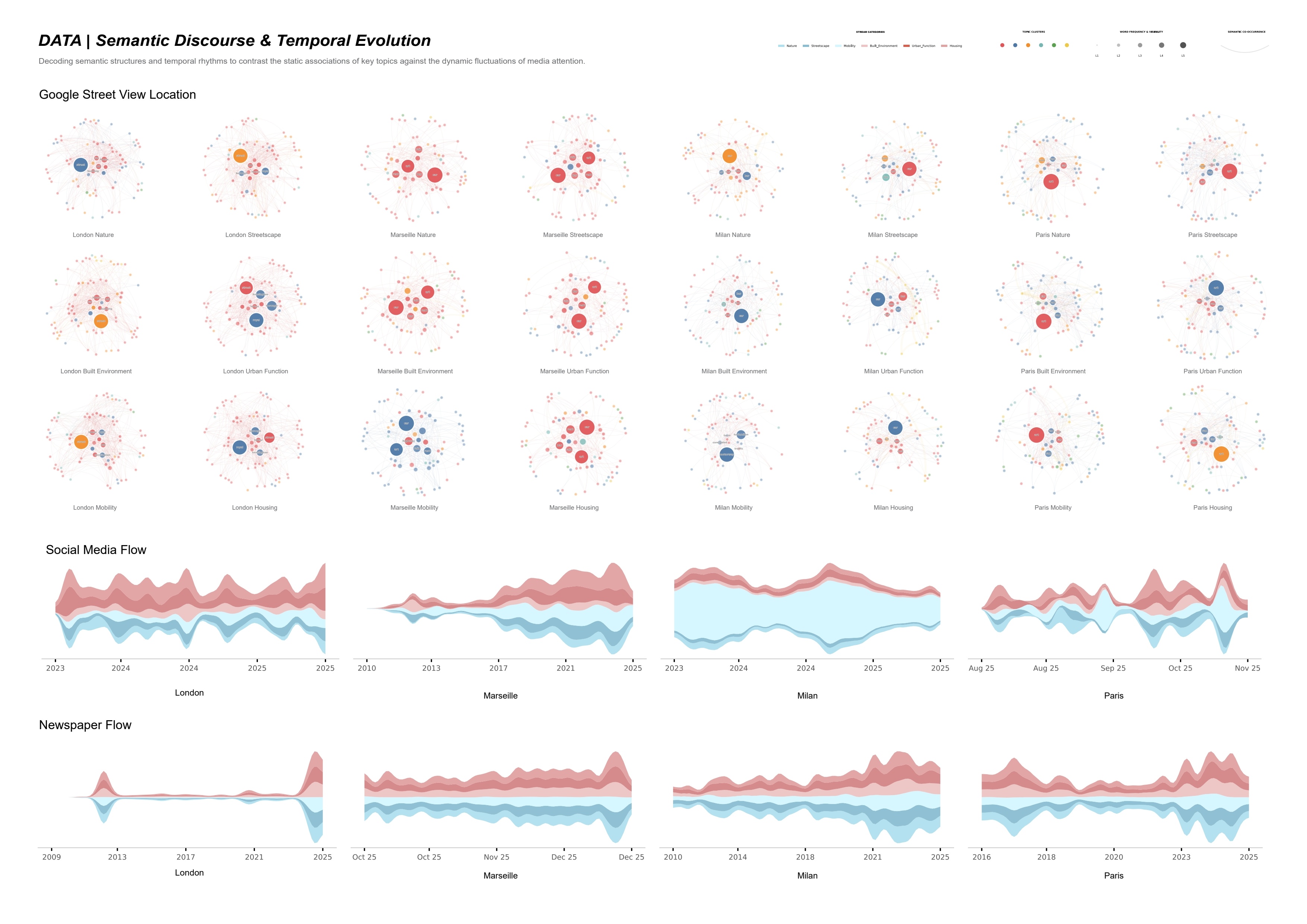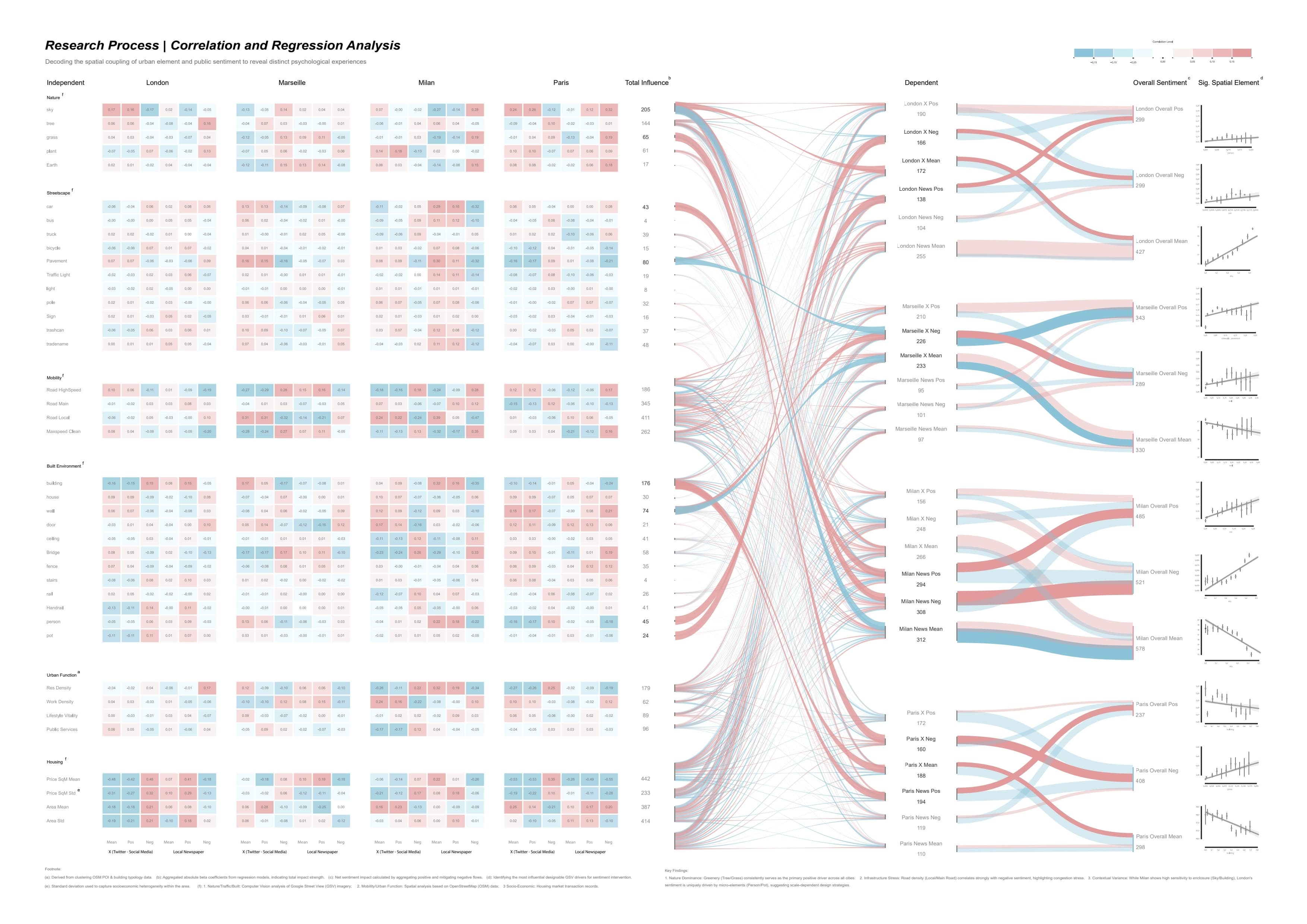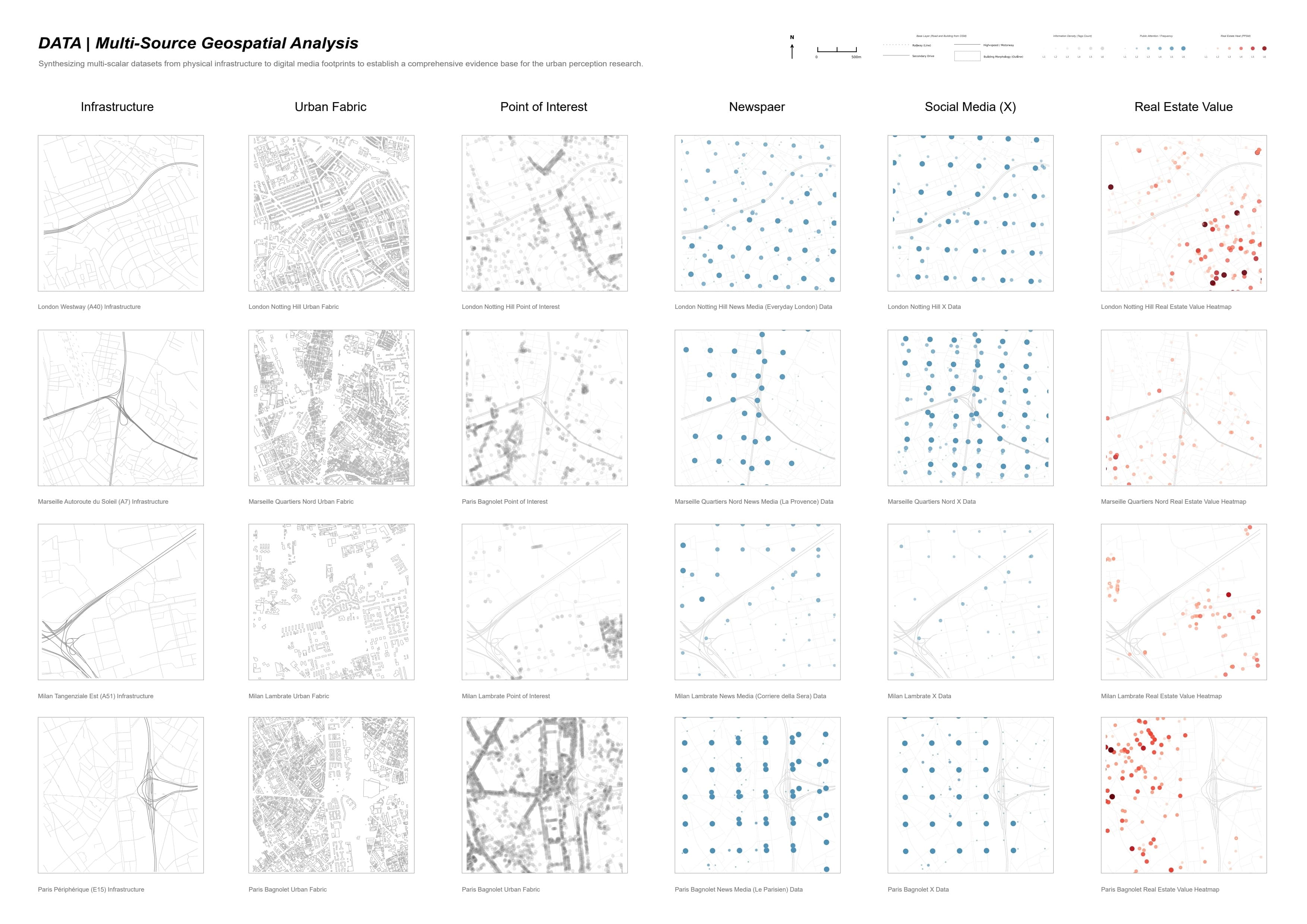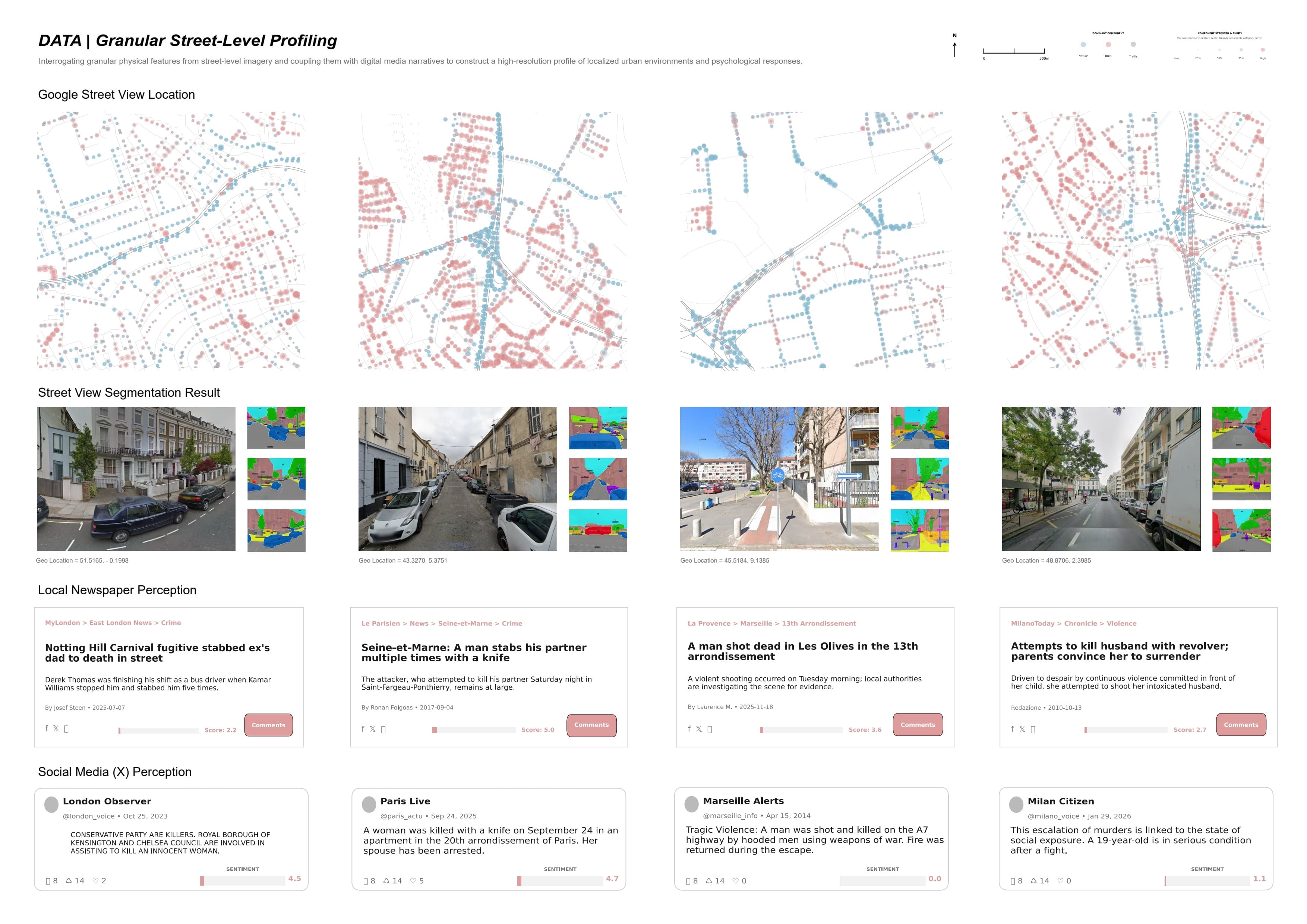 In the dense fabrics of four European metropolises, the "rational" utility of highway infrastructure is overlaid by a dynamic "emotional topography." This project investigates the dissonance—and the Emotional Bias—between these utilitarian arteries and public perception. Focusing on the concept of Non-Neutral Infrastructure, I integrated computer vision and natural language processing to decode the urban interface. I processed over 31,000 Google Street View images to quantify 31 spatial features, while simultaneously parsing social sentiment from Twitter and local news. By mapping emotional intensity against spatial composition via linear regression and Sankey analysis, the project reveals how specific micro-elements (such as sky exposure or greenery) act as invisible "levers" that trigger distinct sentiments. The outcome is a comparative "Spatial Lever Atlas," offering data-driven strategies to transform rigid barriers into emotionally resonant public spaces.